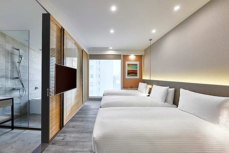 The twin room includes a private bathroom, well-fitted with a bath, a shower, a bidet, a hairdryer and slippers. The air-conditioned twin room provides a flat-screen TV with streaming services, a private entrance, soundproof walls, a mini-bar as well as city views. The unit offers 2 beds.